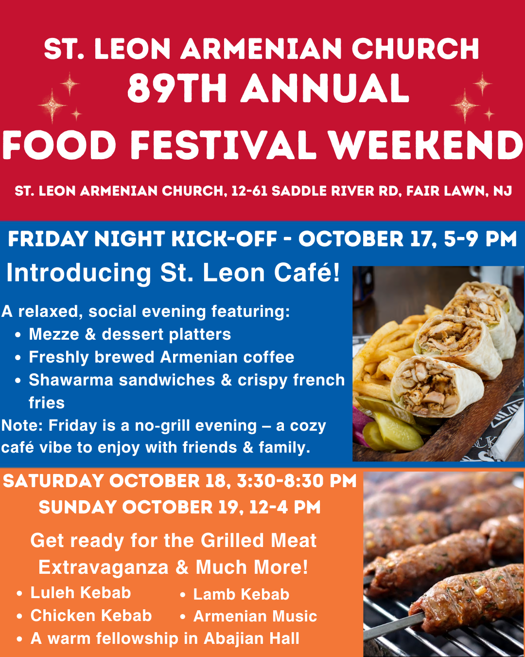 Saturday Oct. 18, 2025 Food Festival 3:30-8:30pm.